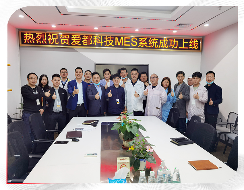 ? ? ? ?愛都科技LEAN MES項目在系統可集成性、可配置性、可適應性、可擴展性和可靠性等方面都得到了客戶的高度認可,此次項目的成功驗收,也得益于愛都科技高層和愛都項目組成員的大力支持和配合是分不開的,也將進一步推動愛都科技生產管理體系的完善,幫助其提升車間現場的綜合管控能力,逐步實現智能化生產。恭祝LEAN MES項目上線并發揮巨大價值。
