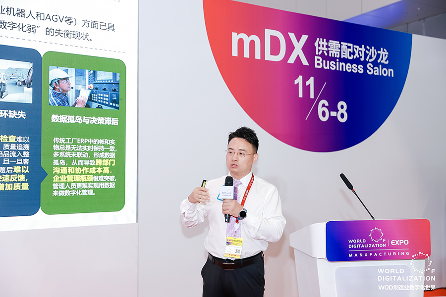 本次沙龍是 WOD 展會核心配套活動,以 “精準鏈接供需” 為核心,破解制造業(yè) “單點轉型易、全鏈升級難” 痛點。深科特副總汪陽名在交流中分享了企業(yè)基于 MOM/MES 系統(tǒng)的一站式解決方案,結合 800 余家客戶實踐經驗,詳解從生產執(zhí)行、智能倉儲到質量管控的全流程數字化落地路徑,強調 “精益化 + 自動化 + 信息化” 深度融合的重要性。